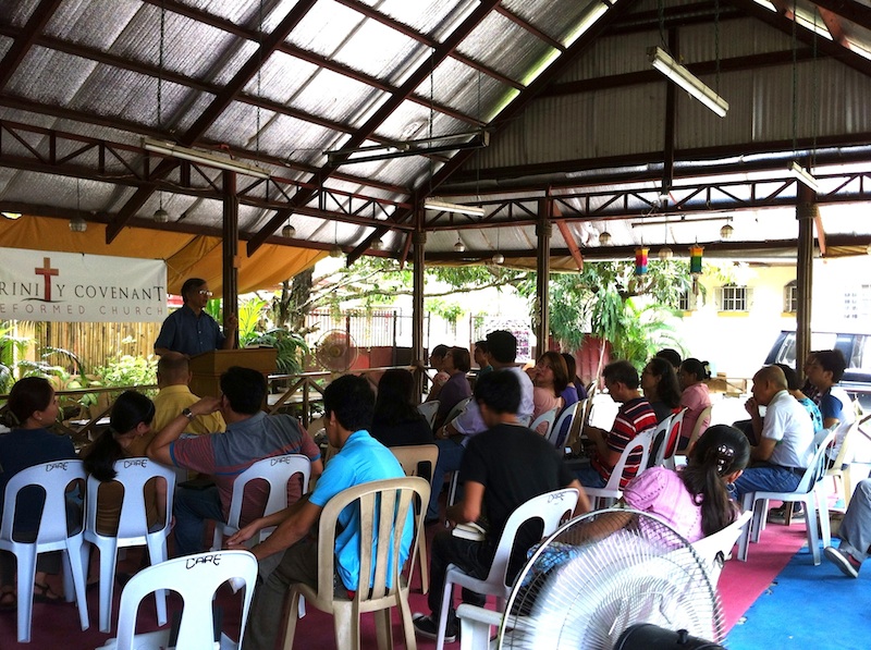 On May 19, 2013, we held our first worship service at our new location in one of the busiest parts of Imus, Cavite. Though a bit warmer since it’s still the hot season, everyone agrees that it’s bigger and quieter, with a lot of trees around the place. We praise God for this good gift to us.